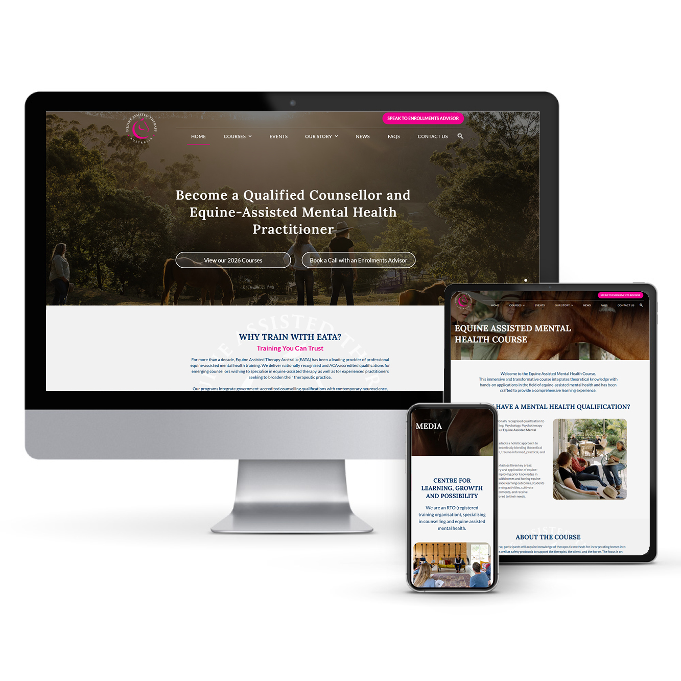 Design, creation and development of a website for a business specialising in training practioners around Australia to become equine assisted therapy facilitators. Visit here.
